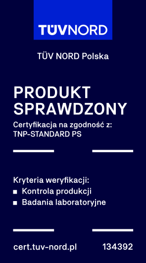 Certyfikat wydany przez TUV NORD jest rozpoznawalny i akceptowalny niemal na całym świecie, świadczy o wysokiej jakości produktu i bezpieczeństwie jego użytkowania.