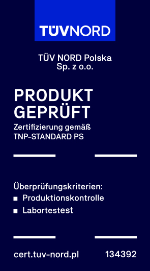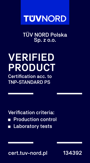 Certyfikat wydany przez TUV NORD jest rozpoznawalny i akceptowalny niemal na całym świecie, świadczy o wysokiej jakości produktu i bezpieczeństwie jego użytkowania.